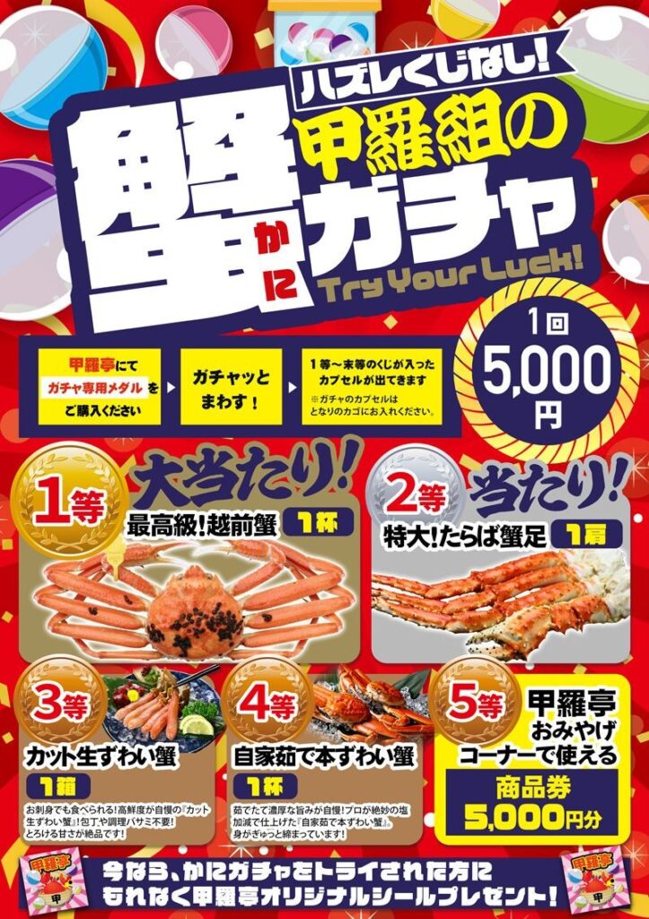 1回5,000円の料金で、1等が出ると高級越前がに(78,000円)が当たる!というところが特徴で、
