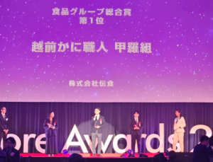 株式会社伝食(本社:福井県敦賀市、代表取締役:田辺晃司)が運営する「越前かに職人 甲羅組」が3月6日に開催された「Yahoo!ショッピング ベストストアアワード 2025」にて「食品グループ 総合賞 第1位」を受賞しました。