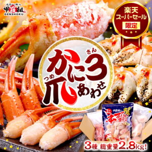 セット内容:ボイルずわいがに爪 1kg,ボイルたらばがに爪 1kg,ボイルとげずわいがに爪 800g