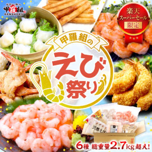 特大むきえび 1㎏,日本海甘えび 100g,海老餃子 50個入,天然エビフライ 8尾入,ガーリックシュリンプ 500g,海老スティック春巻 15本