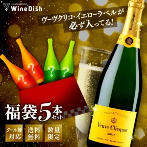 人気シャンパーニュとして高い評価を受ける「ヴーヴ・クリコ イエローラベル」を必ず1本封入し、さらに厳選したシャンパン2本と、人気スパークリングワイン2本を加えた合計5本セットを20,000円(税込)にて販売いたします。いずれも年末年始の乾杯シーンにふさわしいラインナップで、華やかさと実用性を兼ね備えた限定企画となっております。